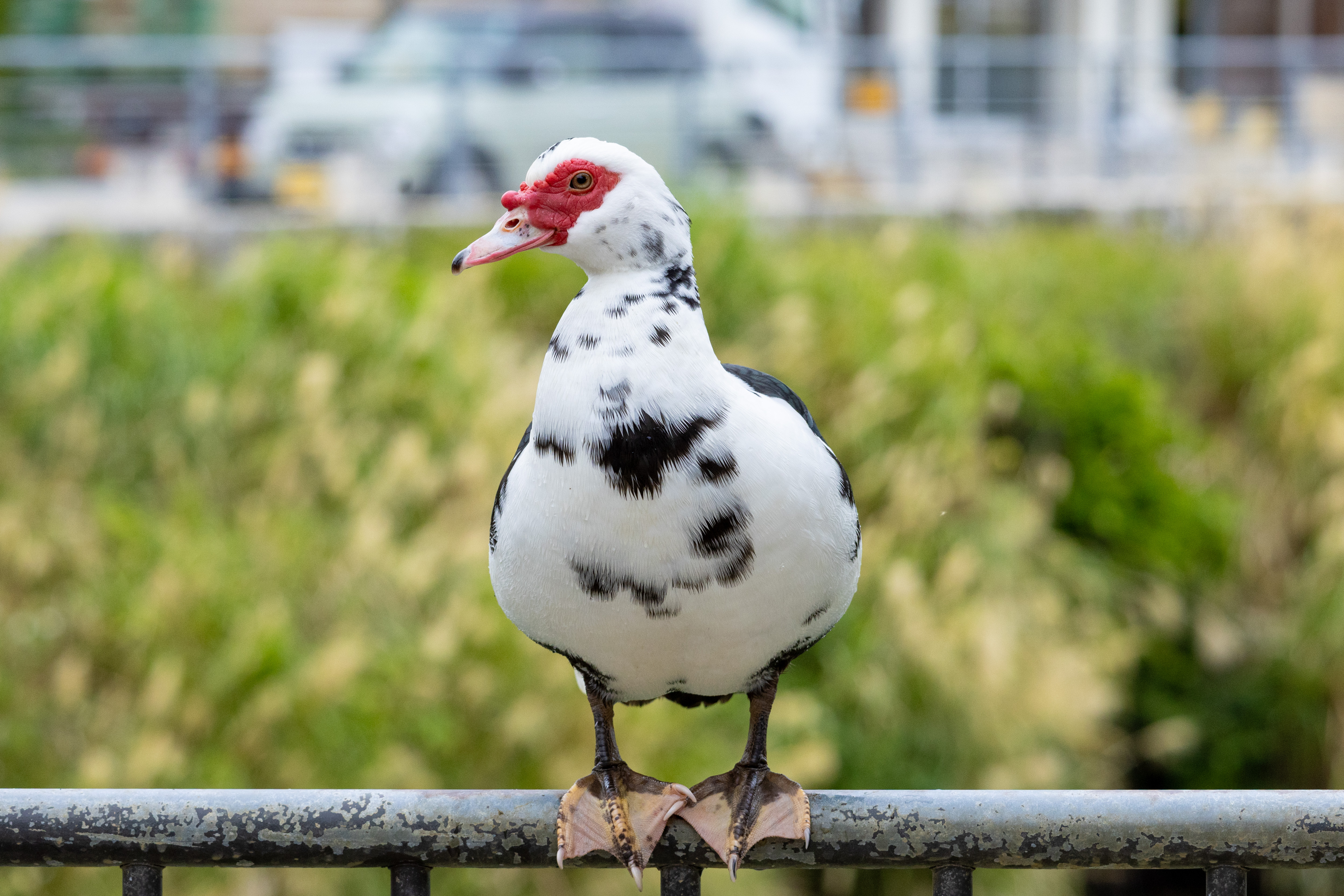 - ヒナとお散歩する先端が黄色い嘴のカモ