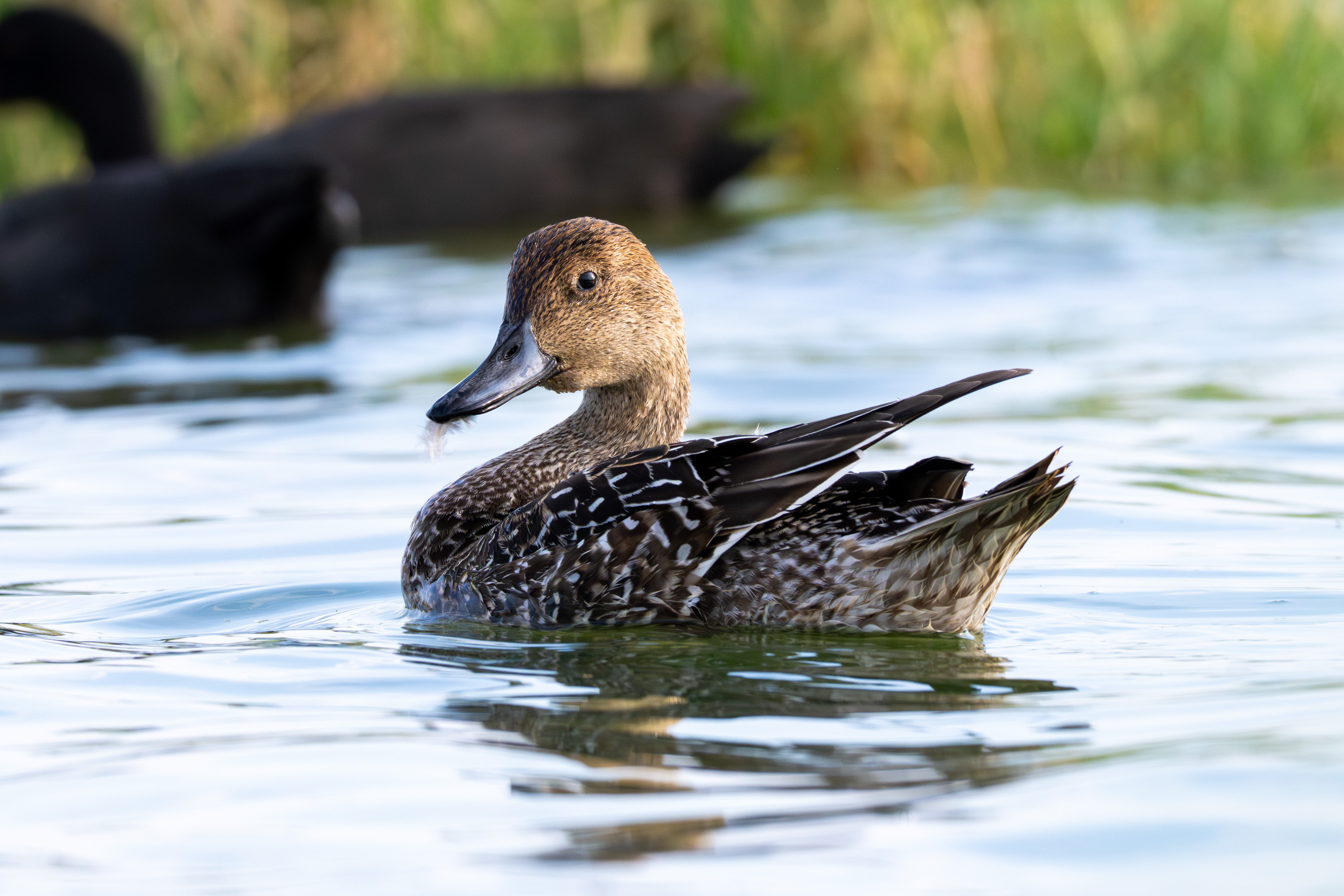 汽水(淡水と海水の混合)域にもいますが、淡水域を好む傾向があるそうです。淡水のカモは、海のカモよりも体が長く足が体の中央にあるため、陸上を歩くのが比較的得意とされています。